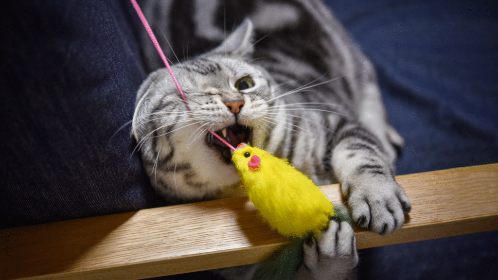 - Use toys that mimic prey movements — erratic, unpredictable, and ground-level.